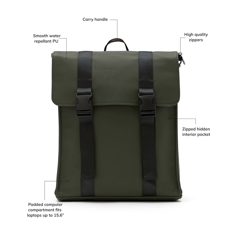 Minimalistische, trendy rugzak geschikt voor alle gelegenheden. De rugzak is gemaakt van waterafstotend PU-materiaal en heeft verstelbare riemen voor optimaal draagcomfort. Naast een ritsvak aan de voorkant heeft de anti-diefstal rugzak ook een verborgen vak aan de achterkant, zodat je je geen zorgen hoeft te maken over de waardevolle spullen die erin zitten. Kan worden gebruikt als werktas en als schooltas.Geschikt voor laptops met een grootte van in totaal 17 inch. Denk eraan dat de afmetingen van het scherm niet hetzelfde zijn als die van de gehele laptop.