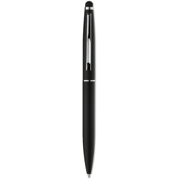 Aluminium balpen met matte afwerking en touch tip. Draaimechanisme, blauwe inkt.