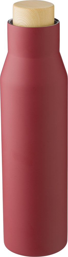 RVS (s/s304) fles (500 ml) met een dubbele wand en een kunststof dop met bamboe-look. Individueel verpakt in een bruine kartonnen doos.