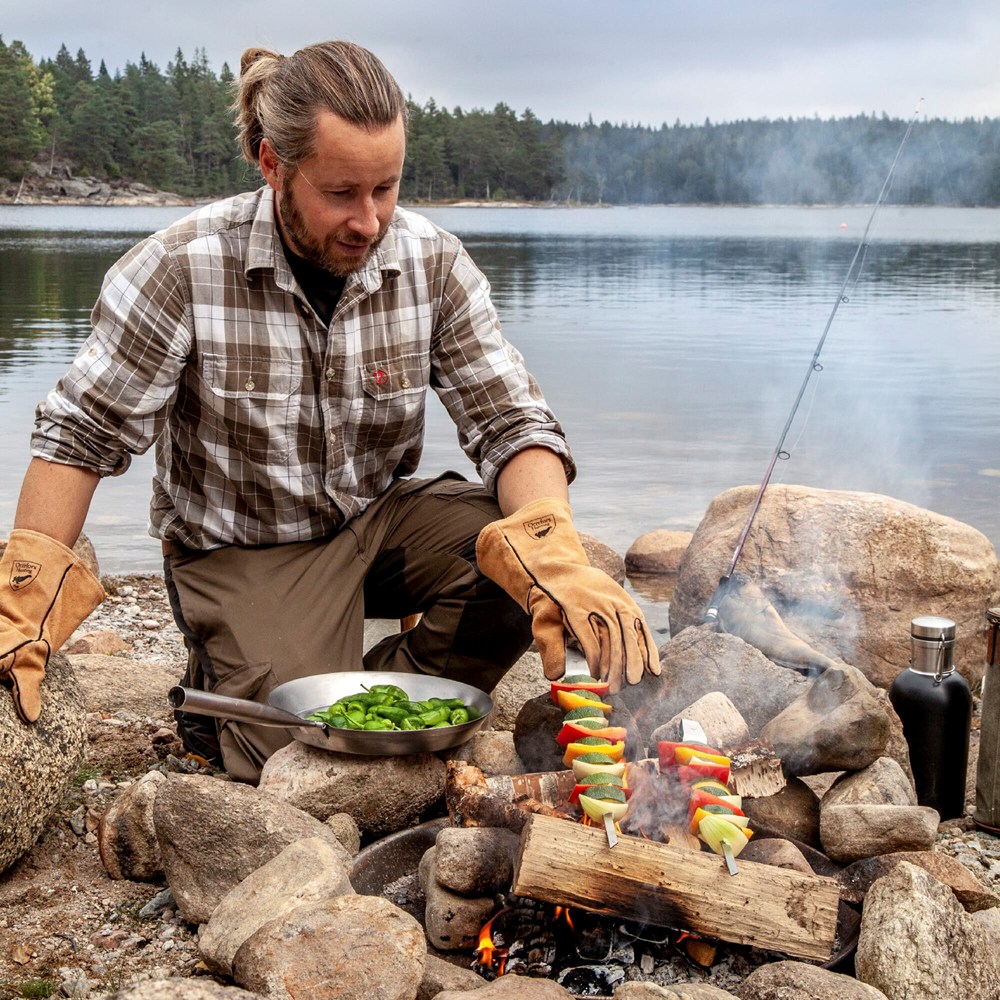 Deze stevige leren Orrefors Hunting BBQ handschoenenset beschermt je tegen het verbranden van je...meer