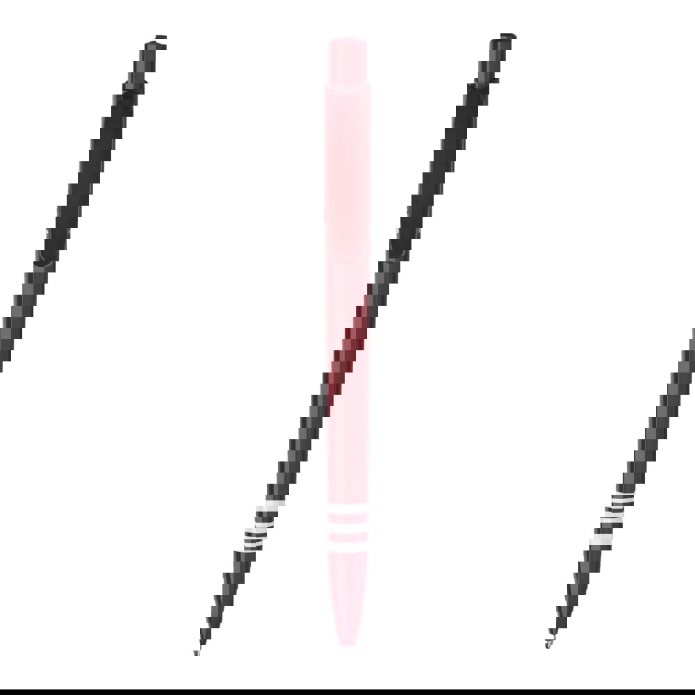 De Tropic Colour balpen in hardcolour heeft een groot drukoppervlak op zowel de clip als de barrel. Met een gekleurde barrel, drukker en een gekleurde clip. De barrel bevat drie wit gekleurde ringen. Inclusief een drukmechaniek en een blauw schrijvende Jumbo vulling. De pen is gemaakt van ABS kunststof, geproduceerd in Europa. Kleur combinaties voor deze pen zijn mogelijk vanaf 5.000 stuks.
