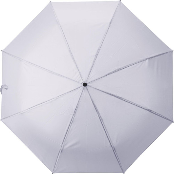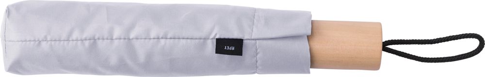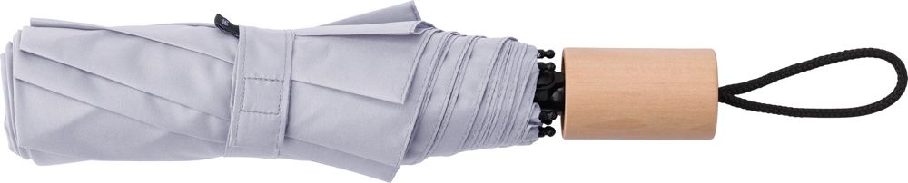 rPET 190T, opvouwbare paraplu met acht panelen en eikenhouten handvat. Inclusief beschermhoes.meer