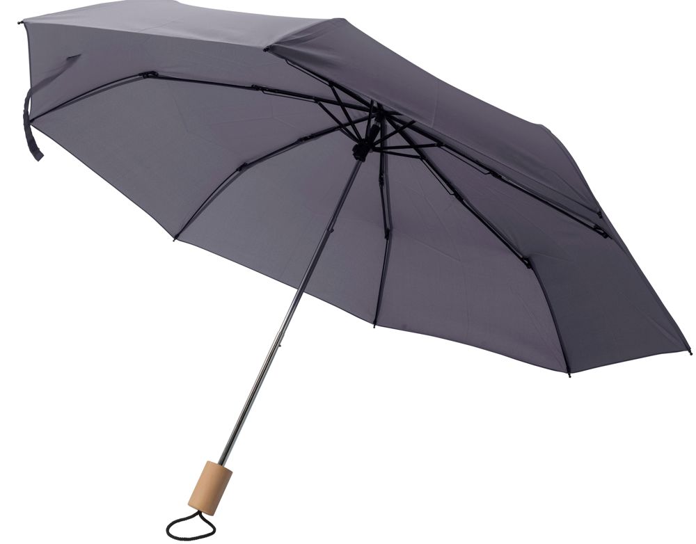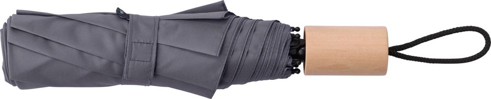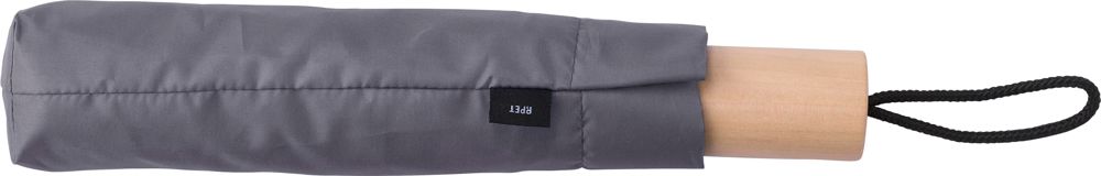 rPET 190T, opvouwbare paraplu met acht panelen en eikenhouten handvat. Inclusief beschermhoes.