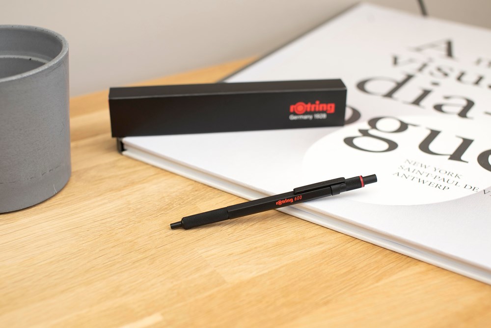 Rotring 600 balpen met klikmechanisme. Blauwe inkt. Inclusief geschenkdoos.
