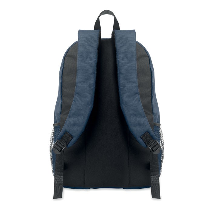 Rugzak van 600D RPET polyester met decoratief koord en ritsvak aan de voorkant. Meshzakken aan beide kanten.