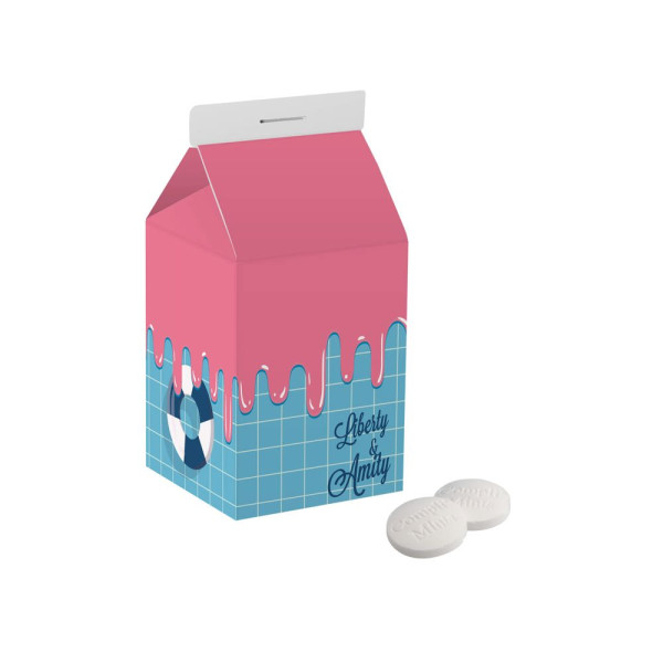 Melkpakje voorzien van een all-over full colour bedrukking en gevuld met ca. 115 gram Compli'mints