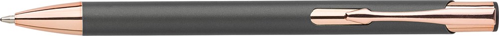 Aluminium balpen met matte afwerking en roségouden details. Blauwschrijvend. Bij het graveren zal...meer