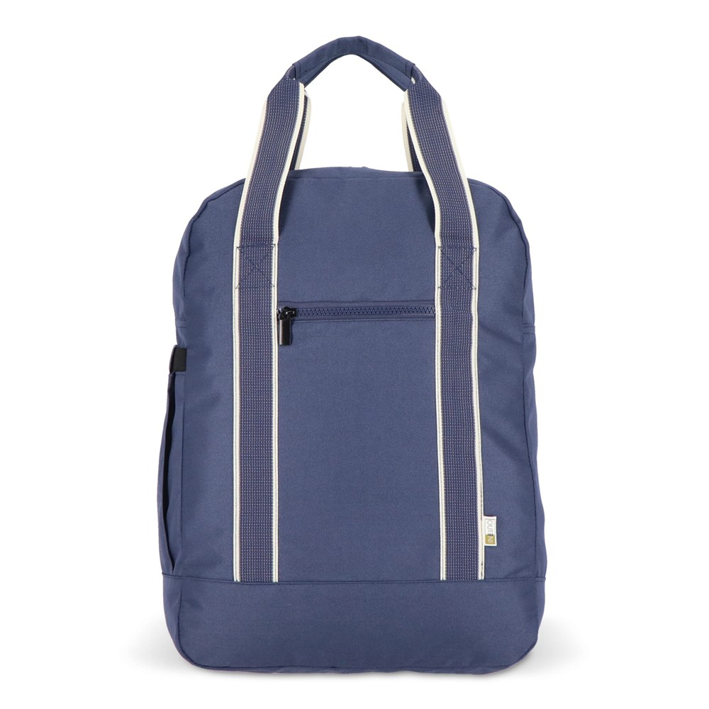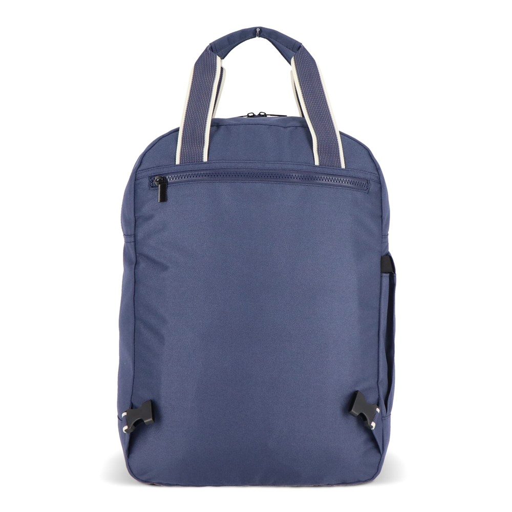 Deze stijlvolle en praktische rugzak uit de InSideOut-serie Koli is de perfecte keuze voor iedereen die vaak reist en functionaliteit en duurzaamheid waardeert. Gemaakt van milieuvriendelijk rPET, een gerecycled materiaal, biedt de Koli rugzak niet alleen voordelen voor het milieu, maar ook een robuuste en langdurige kwaliteit. Het ruime hoofdvak bevat een handig laptopcompartiment, terwijl de voorzijde een voorvak met ritssluiting heeft en de zijkant is voorzien van een rekbaar vak voor een fles of paraplu. De stevige rits zorgt ervoor dat je het hoofdvak gemakkelijk kunt openen en direct toegang hebt tot de inhoud. Het voorvak is ideaal voor bedrijven die op zoek zijn naar een plek om hun logo of bedrijfsnaam te laten drukken, waardoor deze tas een uitstekende promotieoplossing biedt. Door de schouderhengsels in het achtervak te plaatsen, kun je de rugzak eenvoudig omtoveren tot een draagtas. Deze veelzijdige functie, in combinatie met de stevige hengsels, maakt de Koli rugzak niet alleen een rugzak, maar ook een praktische tas.