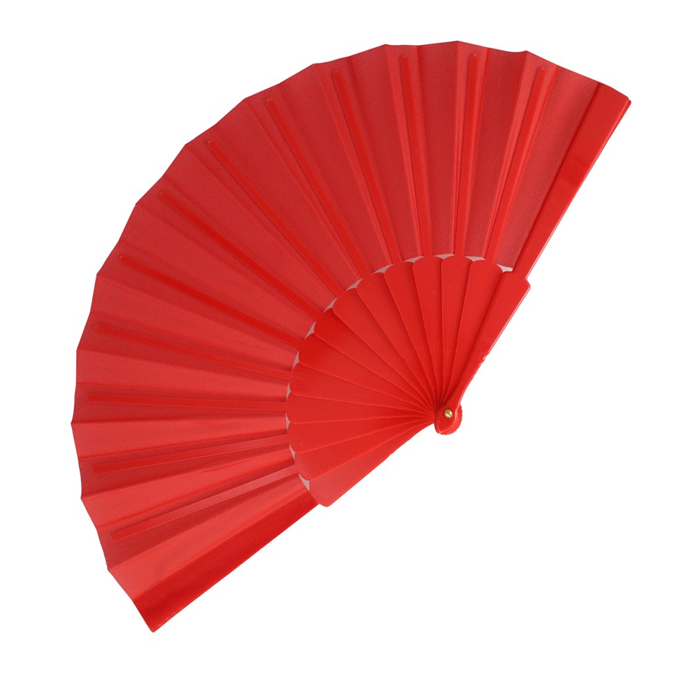 Waaier van kunststof en polyester. Verkrijgbaar in verschillende felle kleuren, ideaal voor buiten evenementen en hete zomerdagen.