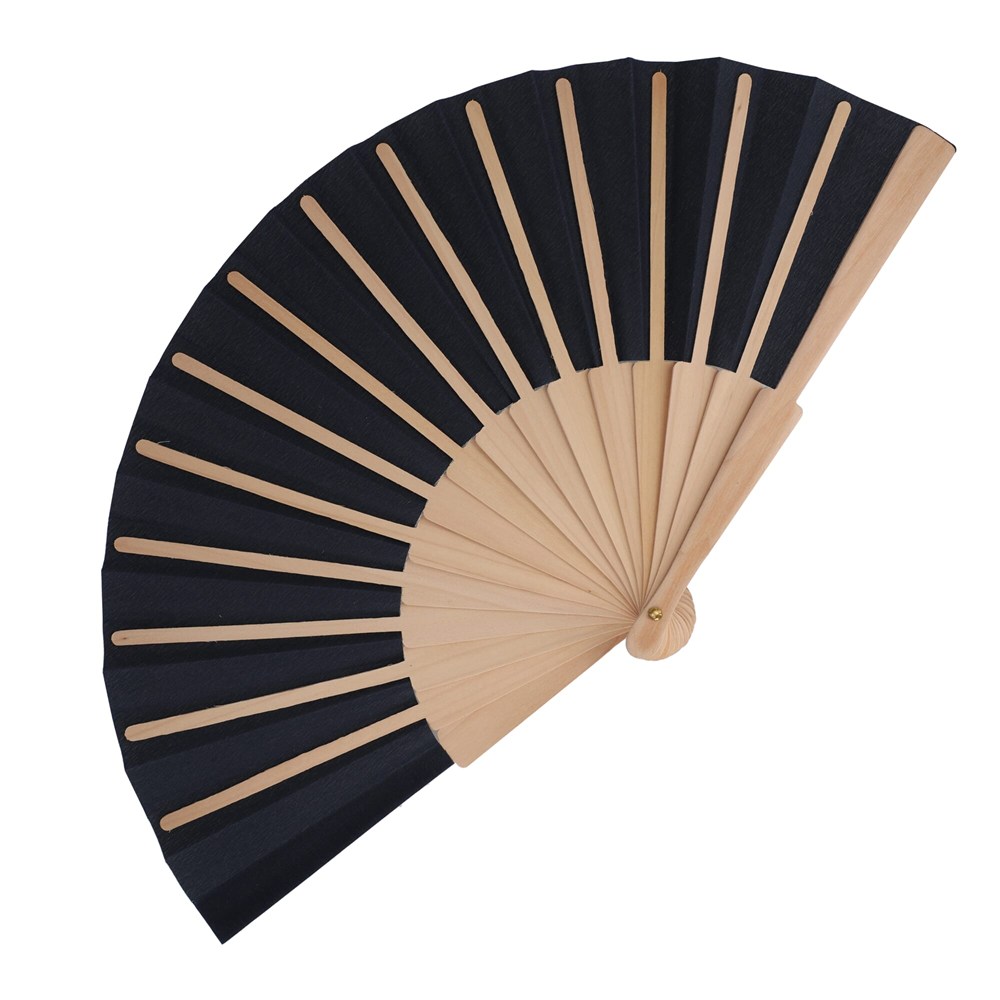 Waaier van hout & R-PET. Verkrijgbaar in verschillende felle kleuren met houten handvat; ideaal voor buiten evenementen en hete zomerdagen.