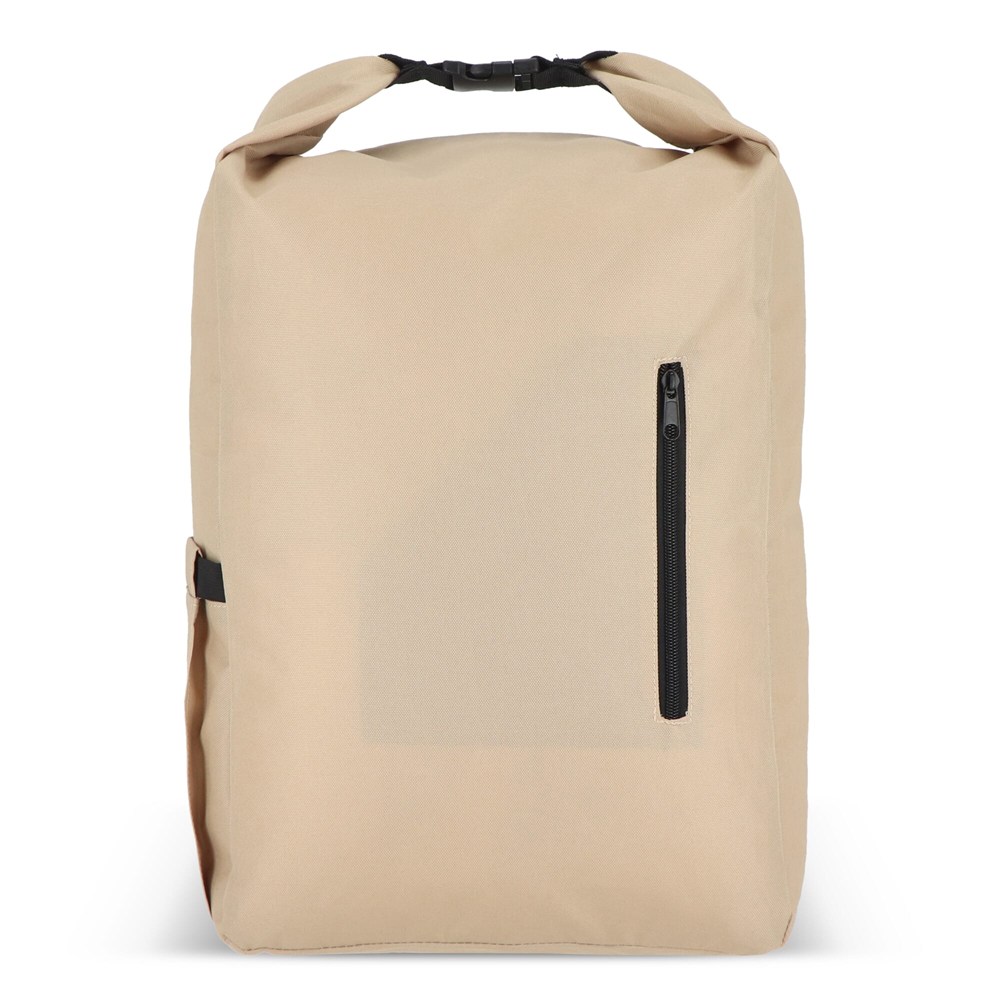 Deze handige rugzak is gemaakt van gerecycled PET. Hij heeft verstelbare, gewatteerde schouderbanden, een handvat aan de bovenkant en een voorvak met ritssluiting, ideaal voor kleinere accessoires. Het zijvak is ideaal voor een waterfles of paraplu.