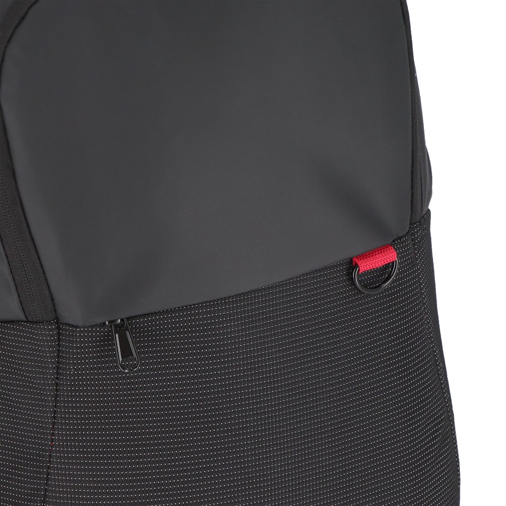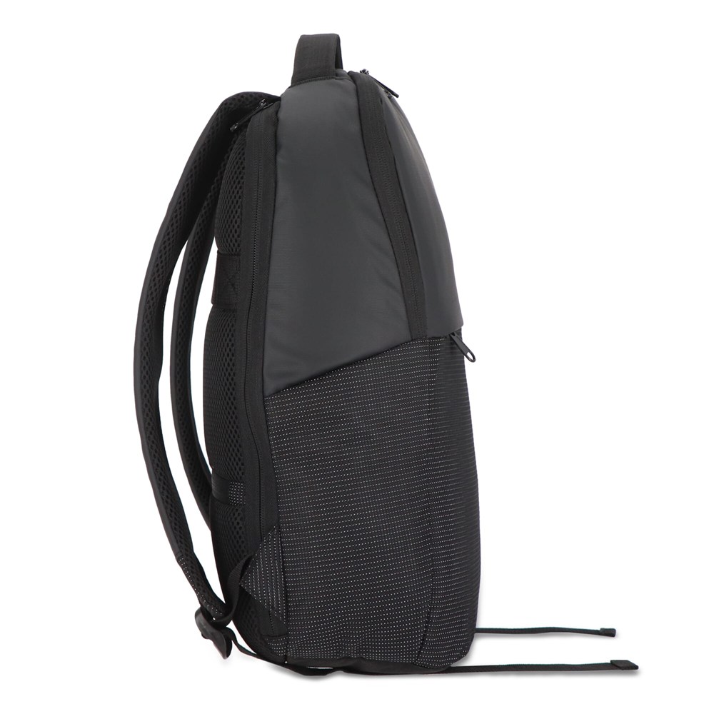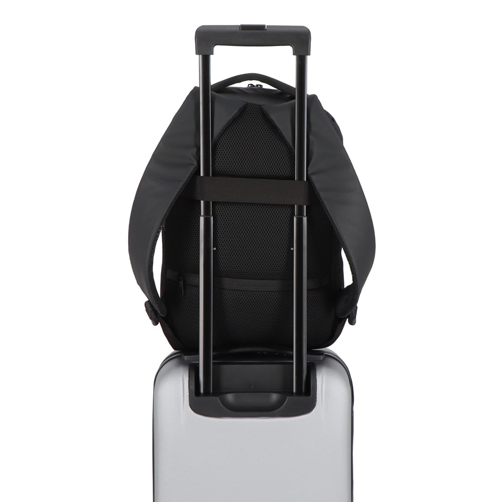 Deze rugzak is gemaakt van luxe jacquard en PU-gecoat 600D-materiaal. De rugzak heeft een verborgen ritsvak aan de voorkant, een handgreep aan de bovenkant, gewatteerde en verstelbare schouderbanden en een veiligheidsvak op het achterpaneel voor waardevolle spullen. De tas heeft een riem om hem over een trolleyhandvat te bevestigen, een gewatteerde rug voor comfort en dubbele toegang voor de laptop via de hoofdopening of een verborgen opening op het achterpaneel. Binnenin vind je een gaasvak, een gewatteerd laptopvak en een gewatteerd tabletvak, allemaal gevoerd met 210D stof.