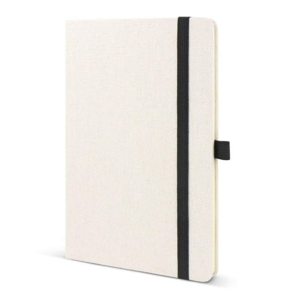 Verbeter je schrijfervaring met dit milieubewuste notitieboek! Gemaakt van gerecycled katoen & R-PET, met FSC-gecertificeerde pagina's van 70gsm. Verrijkt met een bredere elastische band, penlus en lint - jouw duurzame metgezel voor georganiseerde en bewuste notities.