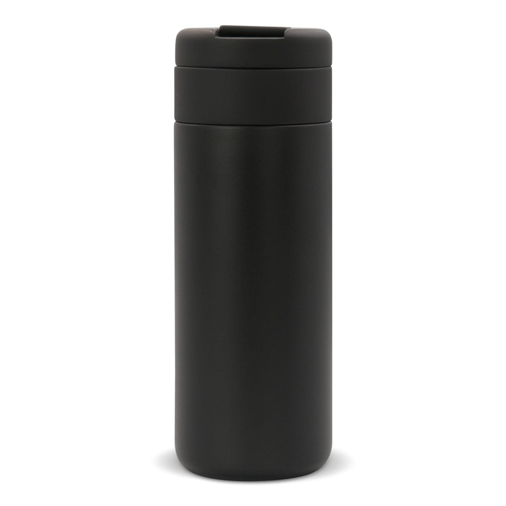 Dubbelwandig vacuüm geïsoleerde beker uit de Toppoint design 'Flow' serie. De mok met klapdeksel...meer