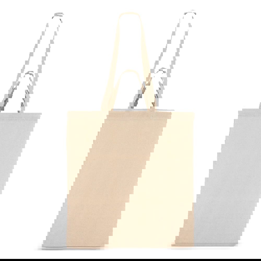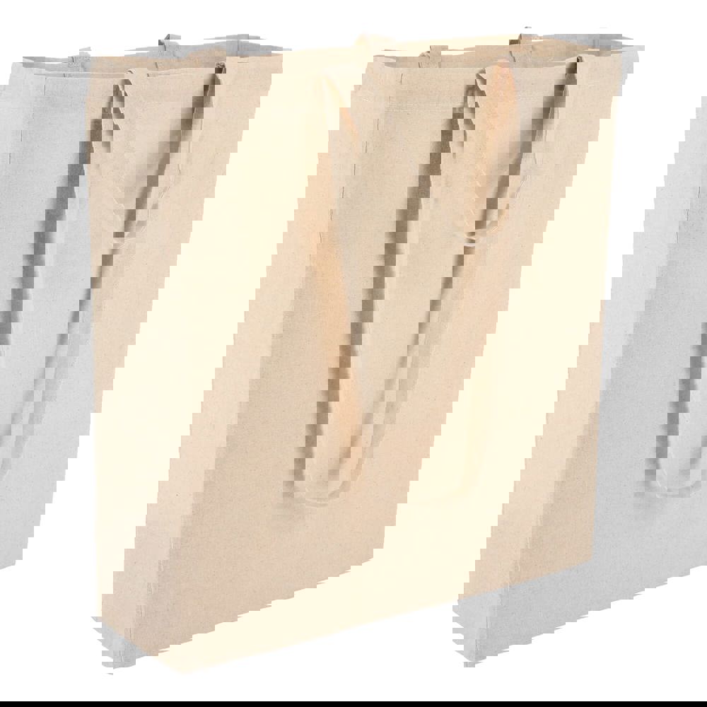 Veelzijdige katoenen tote van 140gsm in naturel kleur, met zowel lange als korte handvatten voor flexibel draagcomfort. Oeko-Tex® gecertificeerd. Ideaal voor retail, events of dagelijks gebruik.