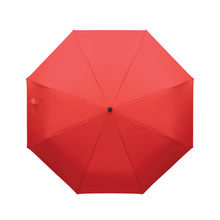 Opvouwbare 21'' windproof paraplu met volledig zwart geplatteerd fiberglas frame met 2 secties. Glasvezel baleinen. 190T RPET pongee panelen. D-vormig karabijnhaakhandvat met rubberen afwerking. Automatisch openen en sluiten. Inclusief etui