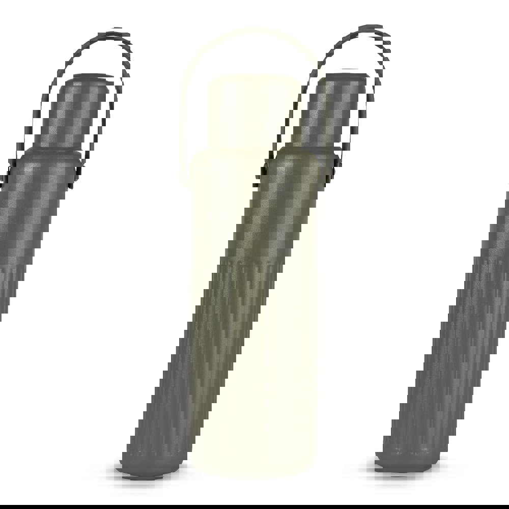 Theo is een strakke thermosfles met de kenmerkende verticale strepen van Sagaform. Gemaakt met dubbelwandige vacuümisolatie en een koperen coating, houdt hij dranken 12 uur warm of 24 uur koud zonder condensatie. Een drukknop zorgt voor eenvoudig schenken, de grote dop kan ook als beker kan dienen. Met een siliconen grip voor eenvoudig dragen. Vaatwasserbestendig.