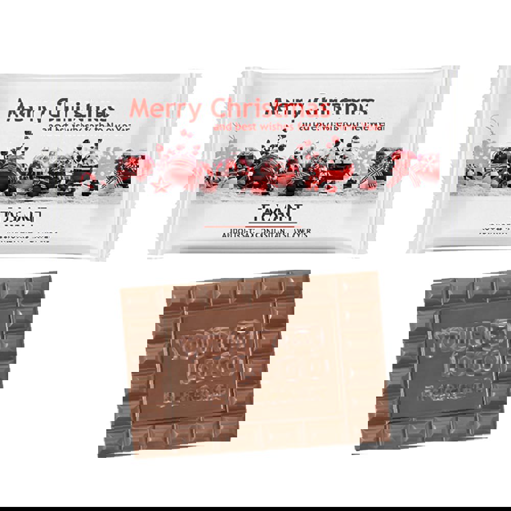 Large logo chocoladereepje in een transparante standaard flowpack, ca. 40 grammeer