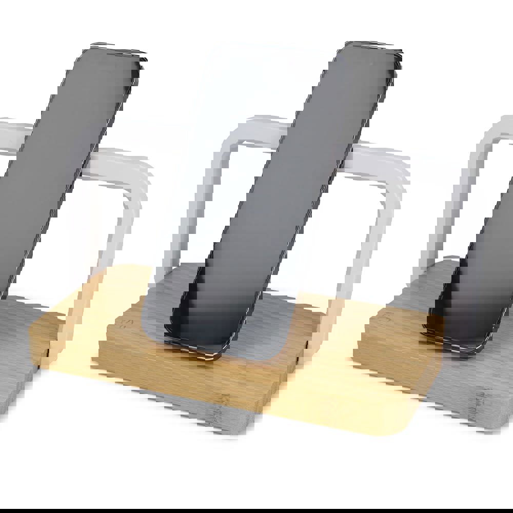 Deze stijlvolle bamboe draadloze oplader combineert een natuurlijke uitstraling met optimale functionaliteit. Met 15W output laadt hij je telefoon snel draadloos op. Het geïntegreerde LED-lampje is dimbaar en zorgt voor sfeervolle verlichting op je nachtkastje. Inclusief USB-C kabel.