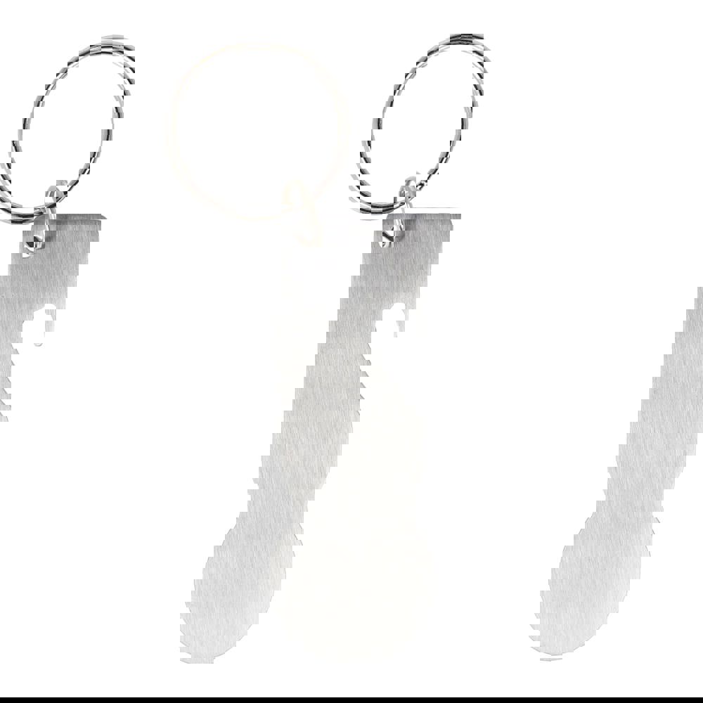 Roestvrijstalen sleutelhanger met geïntegreerde flesopener en winkelwagenmunt, geschikt voor de meeste winkelwagens in West-Europa. Muntkop van 23 mm. Praktisch ontwerp met ruime mogelijkheden voor branding.