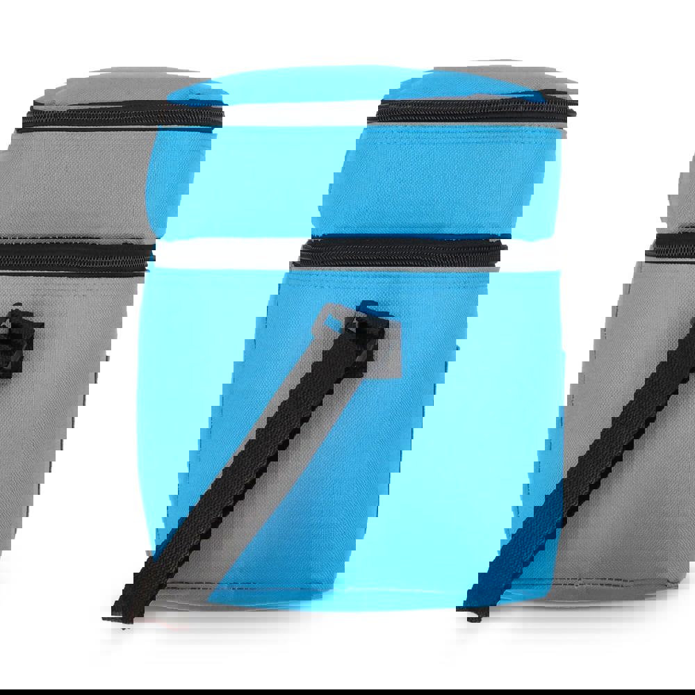 12L Koeltas gemaakt van duurzaam gerecycled PET 600D. Ontwerp met twee compartimenten voor het georganiseerd houden van voedsel. Voorzien van een aluminiumfolie voering en een voorvak. Praktisch en ruim.