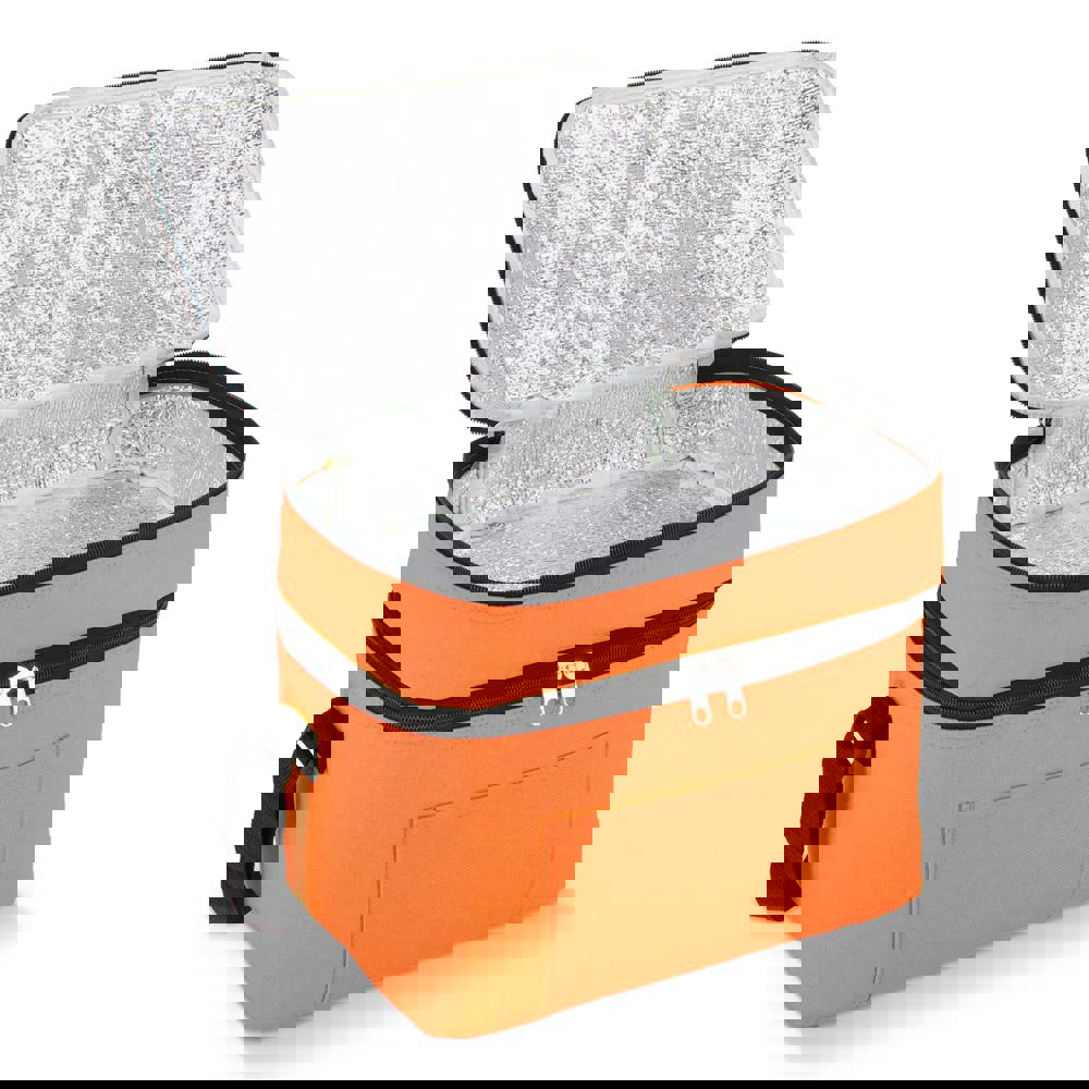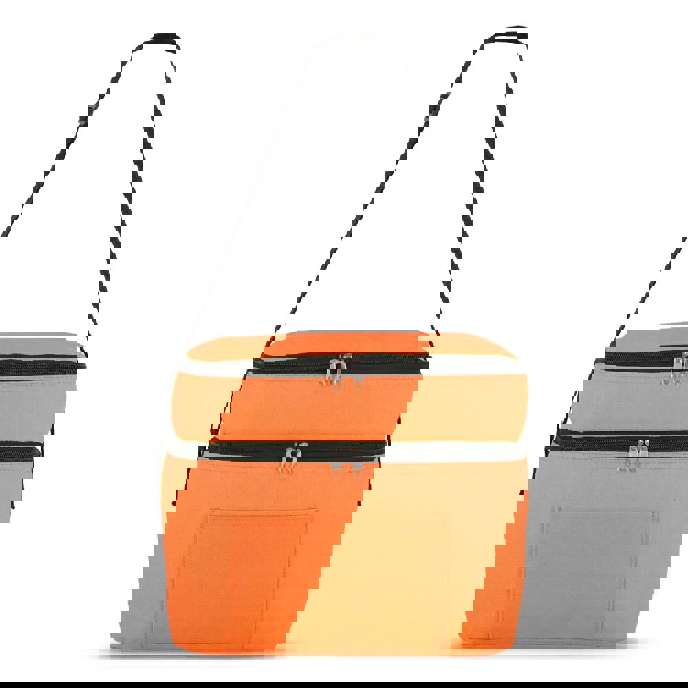 12L Koeltas gemaakt van duurzaam gerecycled PET 600D. Ontwerp met twee compartimenten voor het georganiseerd houden van voedsel. Voorzien van een aluminiumfolie voering en een voorvak. Praktisch en ruim.