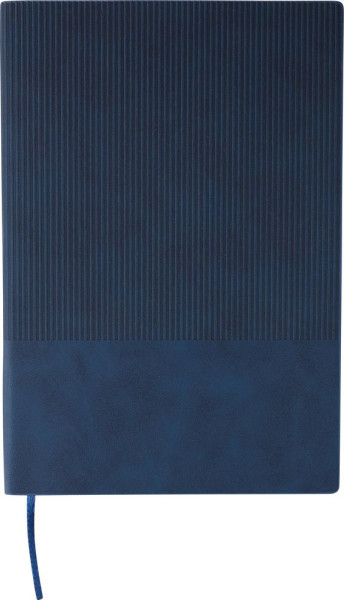 Gerecycled PU-notitieboek (ca. A5) met een harde kaft en ribfluweellook aan de bovenkant van de voor- en achterkant. Inclusief lintbladwijzer en 100 gelinieerde pagina’s (80 gsm). Met een gerecycled logo in reliëf op de achterkant.
