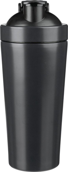 Gerecycled roestvrijstalen enkelwandige shaker (750 ml), gemaakt van roestvrij staal 304. Voorzien van een schroefdop van PP en een metalen shakerbal om te mixen. Lasergegraveerd gerecycled logo op de voorkant. Individueel verpakt in een kraftpapieren doos.