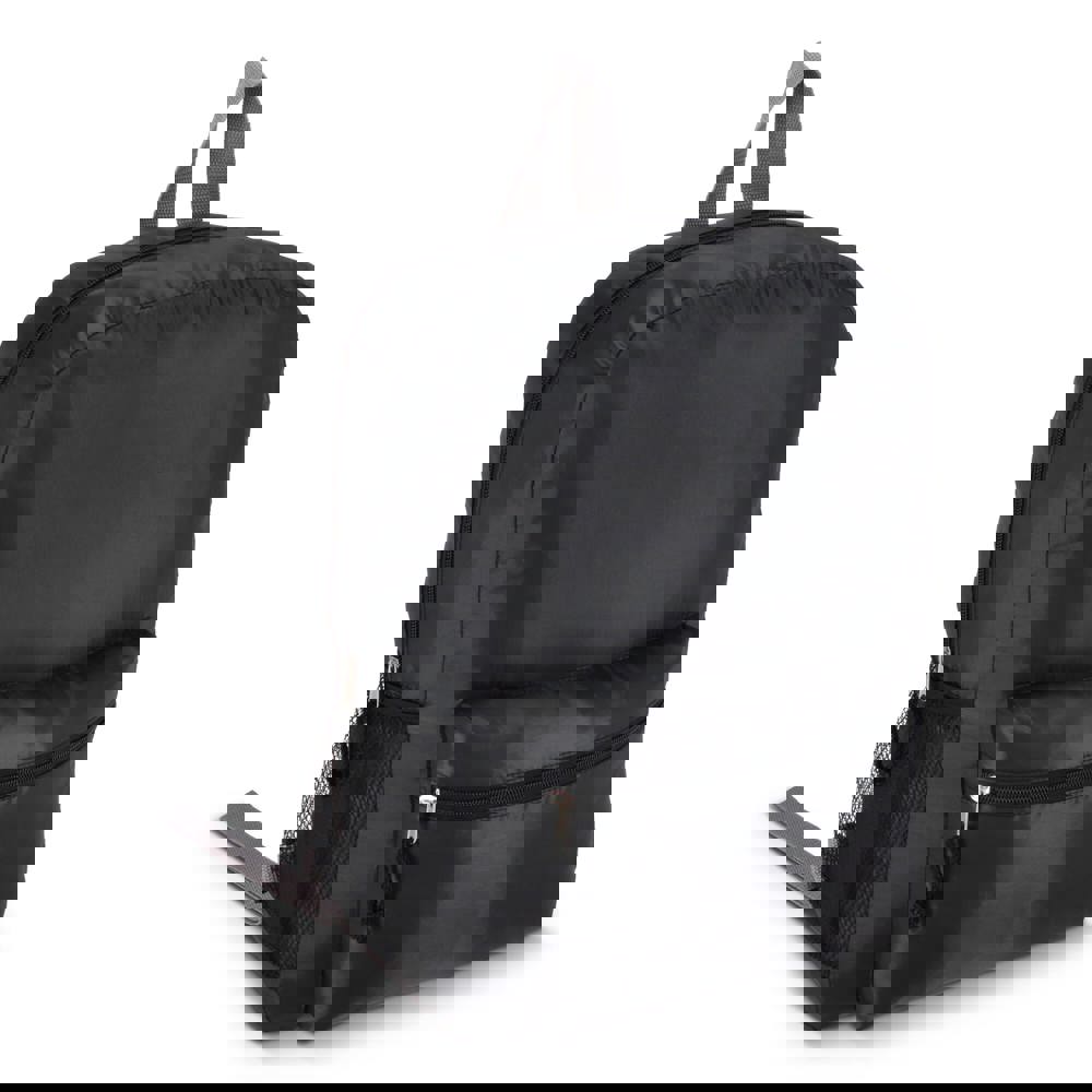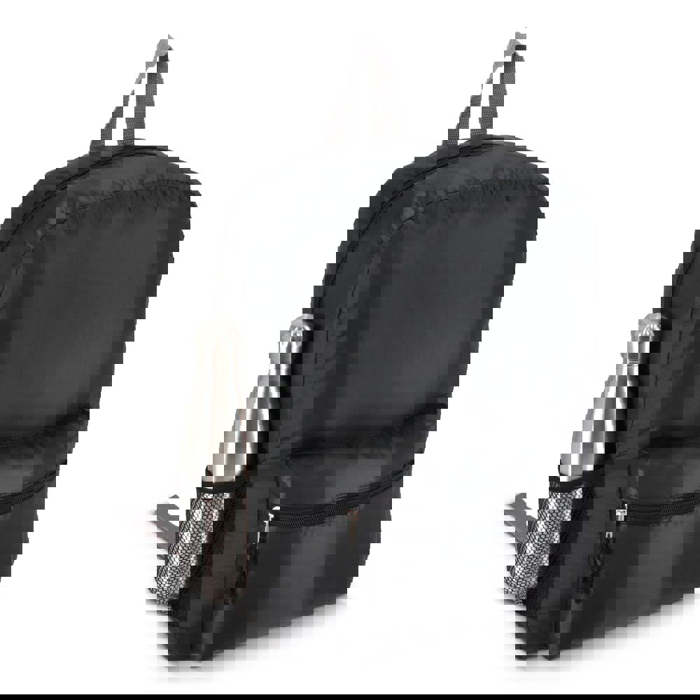 Lichtgewicht rugzak van 190T gerecycled PET. Met een voorvak met ritssluiting, verstelbare schouderbanden en een zijvak van mesh voor een fles, paraplu of andere benodigdheden. Opvouwbaar tot klein formaat, waardoor ideaal voor daguitstapjes en reizen.