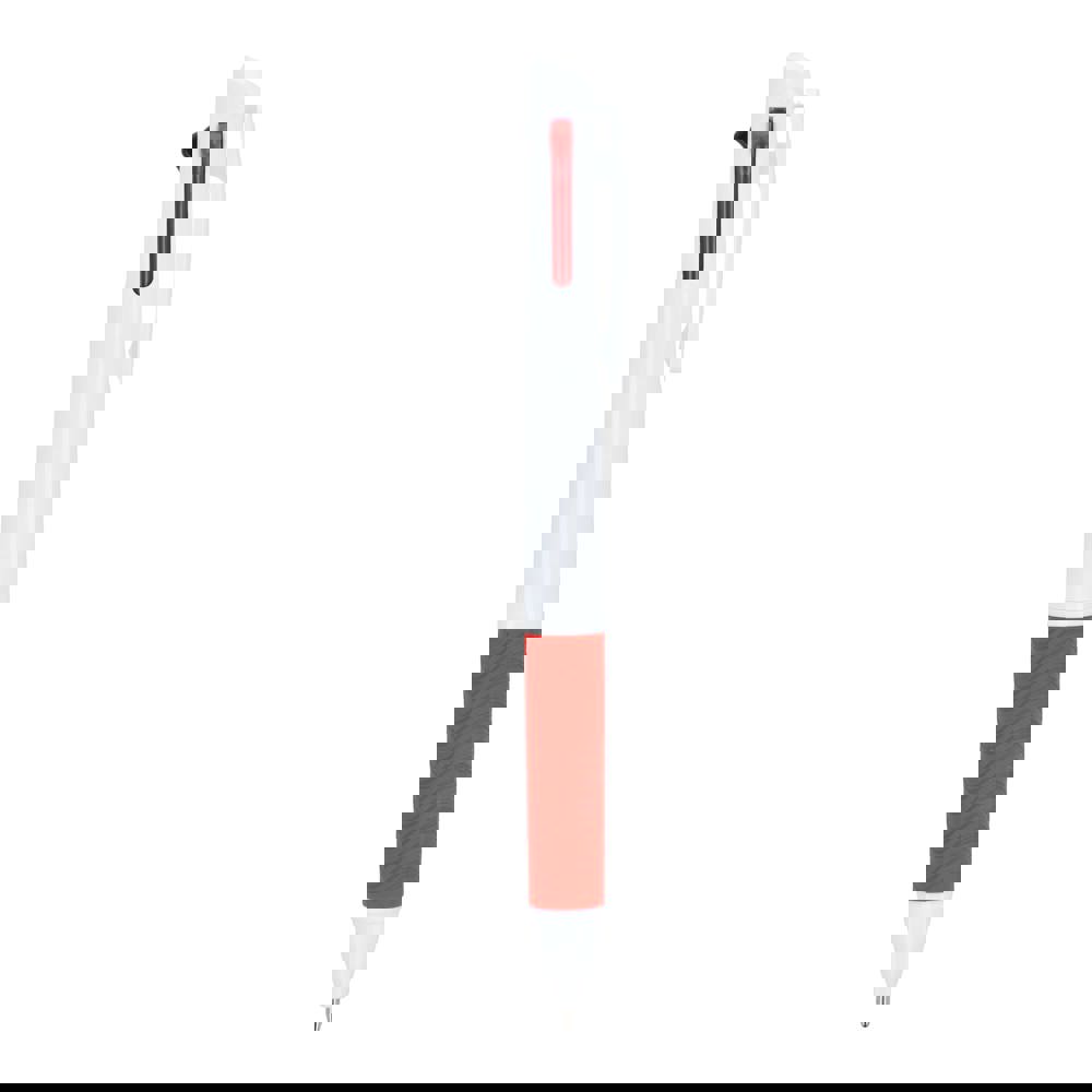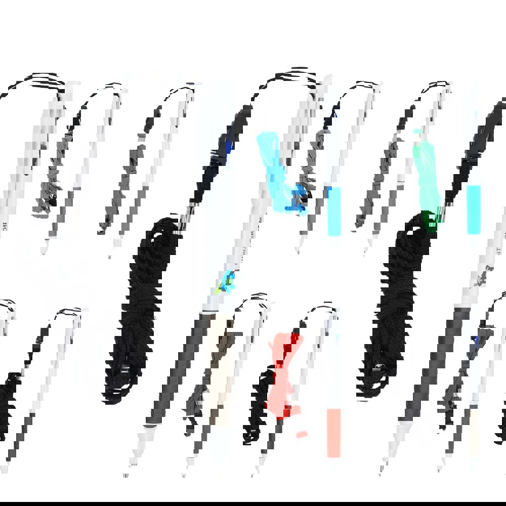 Driekleurige balpen met grip en keycord. De schrijfkleuren zijn blauw, zwart en rood.