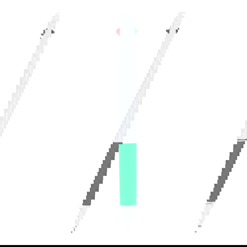 Driekleurige balpen met grip en keycord. De schrijfkleuren zijn blauw, zwart en rood.