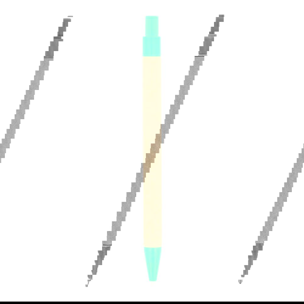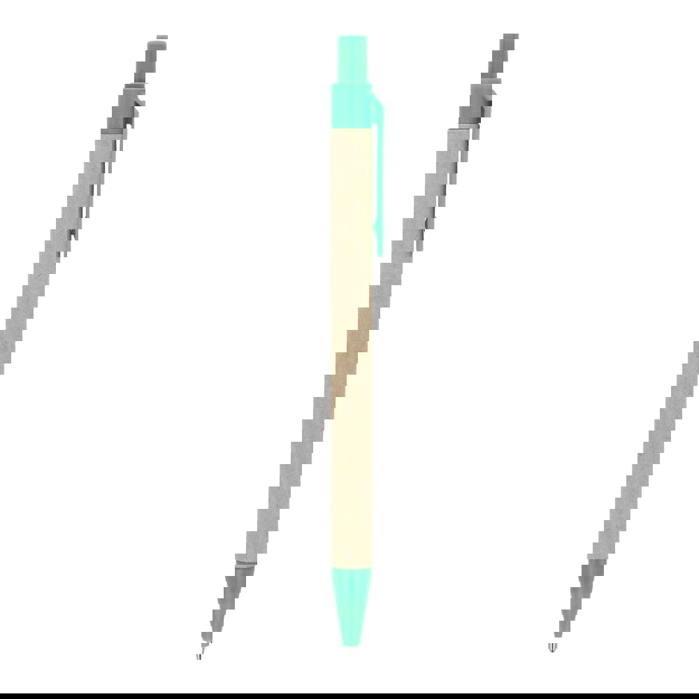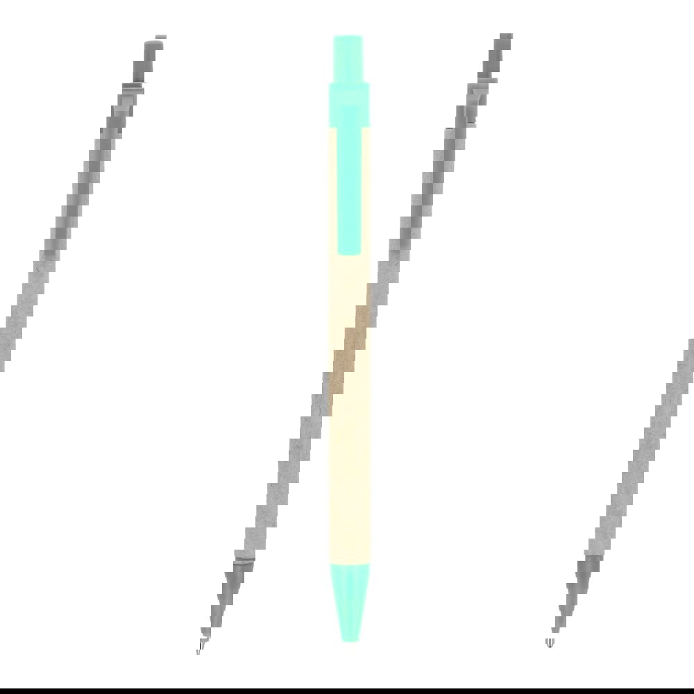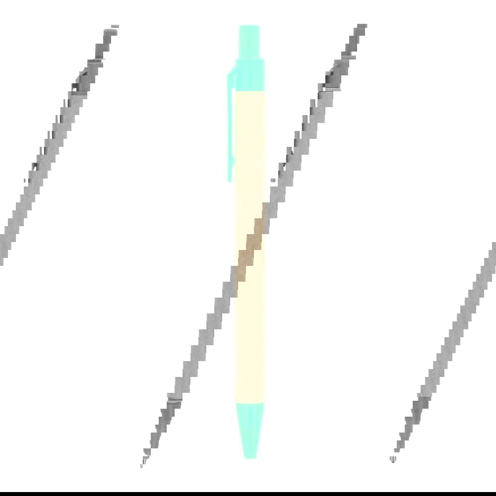 Balpen van papier met gekleurde kunststof onderdelen van gerecycled materiaal. Met blauwe schrijvende vulling.