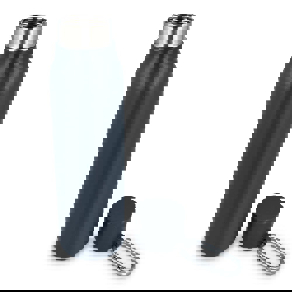 Stevige thermosfles van 600 ml met matte afwerking. De dop heeft een karabijnhaak om hem aan je tas te bevestigen en gemakkelijk mee te nemen. Per stuk verpakt in een giftbox.