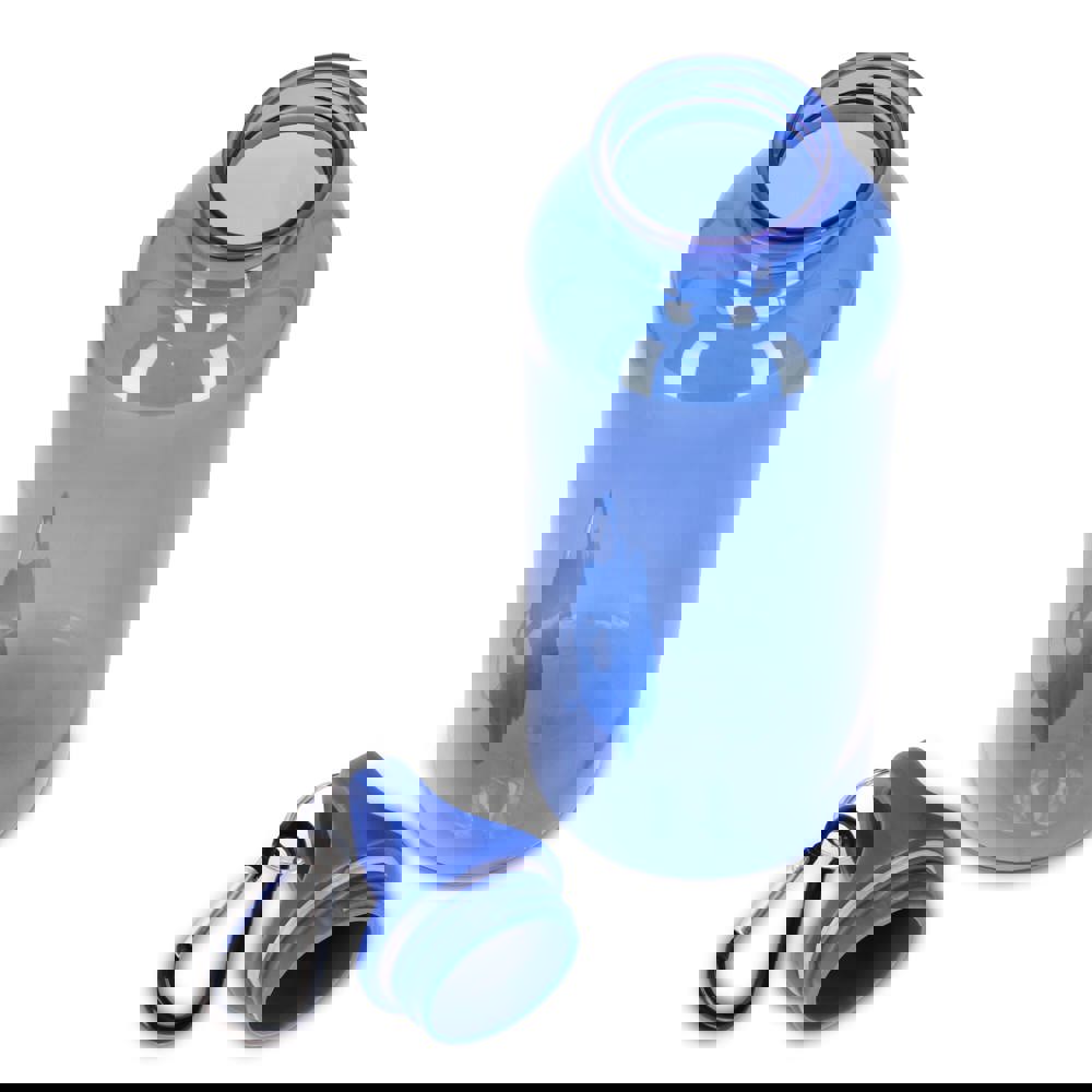 Blijf stijlvol en duurzaam gehydrateerd met deze 500 ml R-PET waterfles met transparante afwerking. Uitgerust met een handige karabijnhaakclip is hij perfect voor bevestiging aan rugzakken, handtassen of sporttassen. Verkrijgbaar in een reeks trendy en promotionele kleuren.