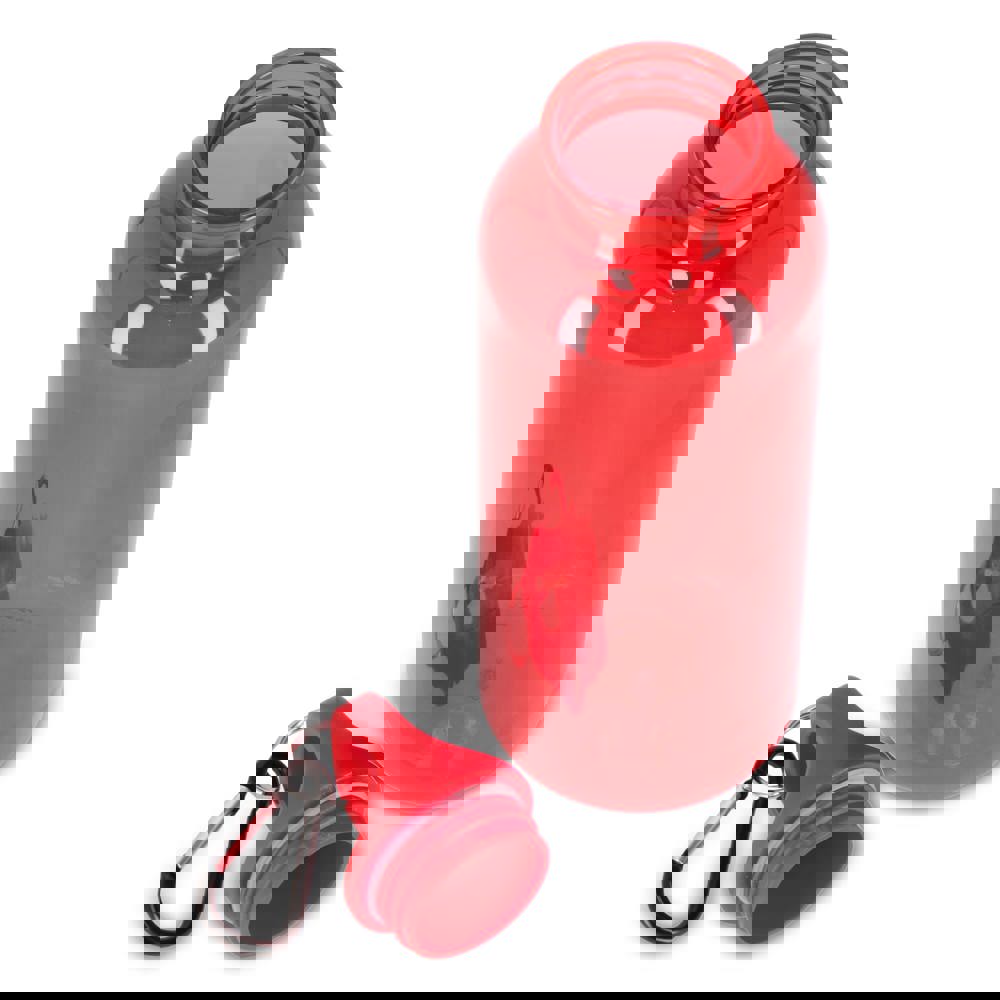 Blijf stijlvol en duurzaam gehydrateerd met deze 500 ml R-PET waterfles met transparante afwerking. Uitgerust met een handige karabijnhaakclip is hij perfect voor bevestiging aan rugzakken, handtassen of sporttassen. Verkrijgbaar in een reeks trendy en promotionele kleuren.