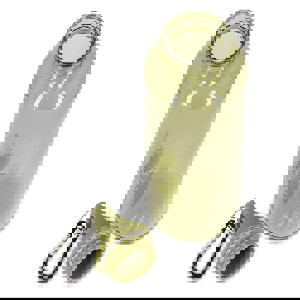 Blijf stijlvol en duurzaam gehydrateerd met deze 500 ml R-PET waterfles met transparante afwerking. Uitgerust met een handige karabijnhaakclip is hij perfect voor bevestiging aan rugzakken, handtassen of sporttassen. Verkrijgbaar in een reeks trendy en promotionele kleuren.