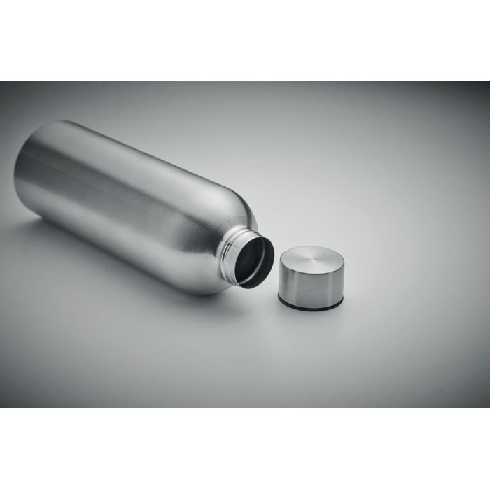 Enkelwandige fles van gerecycled roestvrij staal (90% gerecycled roestvrij staal en 10% roestvrij staal). Lekvrij. Inhoud 750ml. Aangezien dit een enkelwandige fles is, kan er nog steeds warmteoverdracht plaatsvinden.