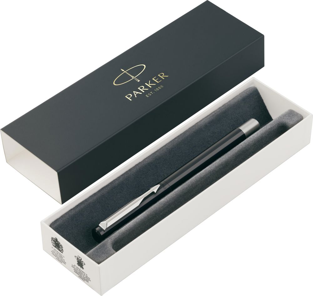 Parker Vector metalen rollerbal, blauwschrijvend. Leverbaar in diverse kleuren, wordt geleverd samen met luxe verpakking (separaat geleverd).