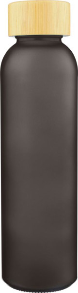 Glazen drinkfles (500?ml) met een matte buitenkant en een bamboe draaidop. Gemaakt van natriumcalciumglas en uitsluitend geschikt voor koude dranken. Individueel verpakt in een bruine kartonnen doos.