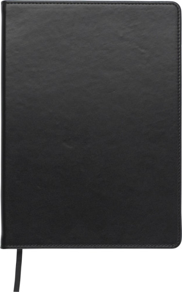 Luxe notitieboek (ca. A5), met kunstlederen omslag en bladwijzer (ca. 100 gelinieerde pagina's).meer