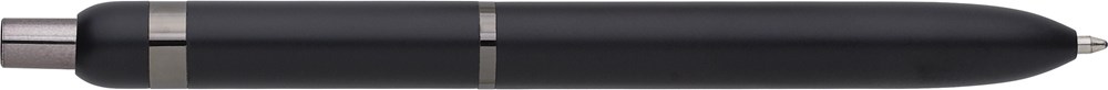 Aluminium en messing balpen. Met glanzende details op de clip, ring en drukknop. Blauwe inkt....meer