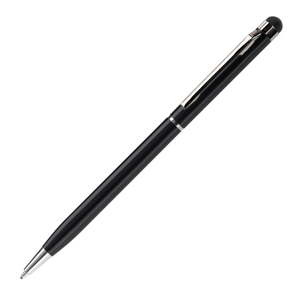 Moderne aluminium balpen met een touchscreen bovenkant. Pen is voorzien van draaimechanisme.